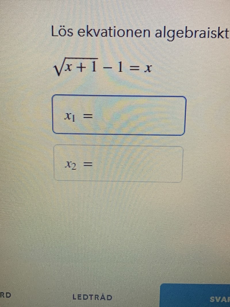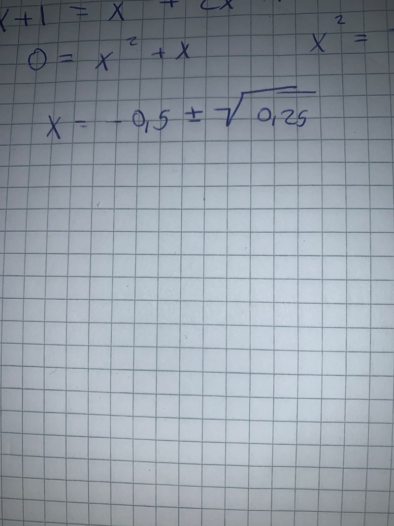 jag fick den till detta. sen så blir det 0,5 i roten ur, och svaret blir då antingen 0 eller -1