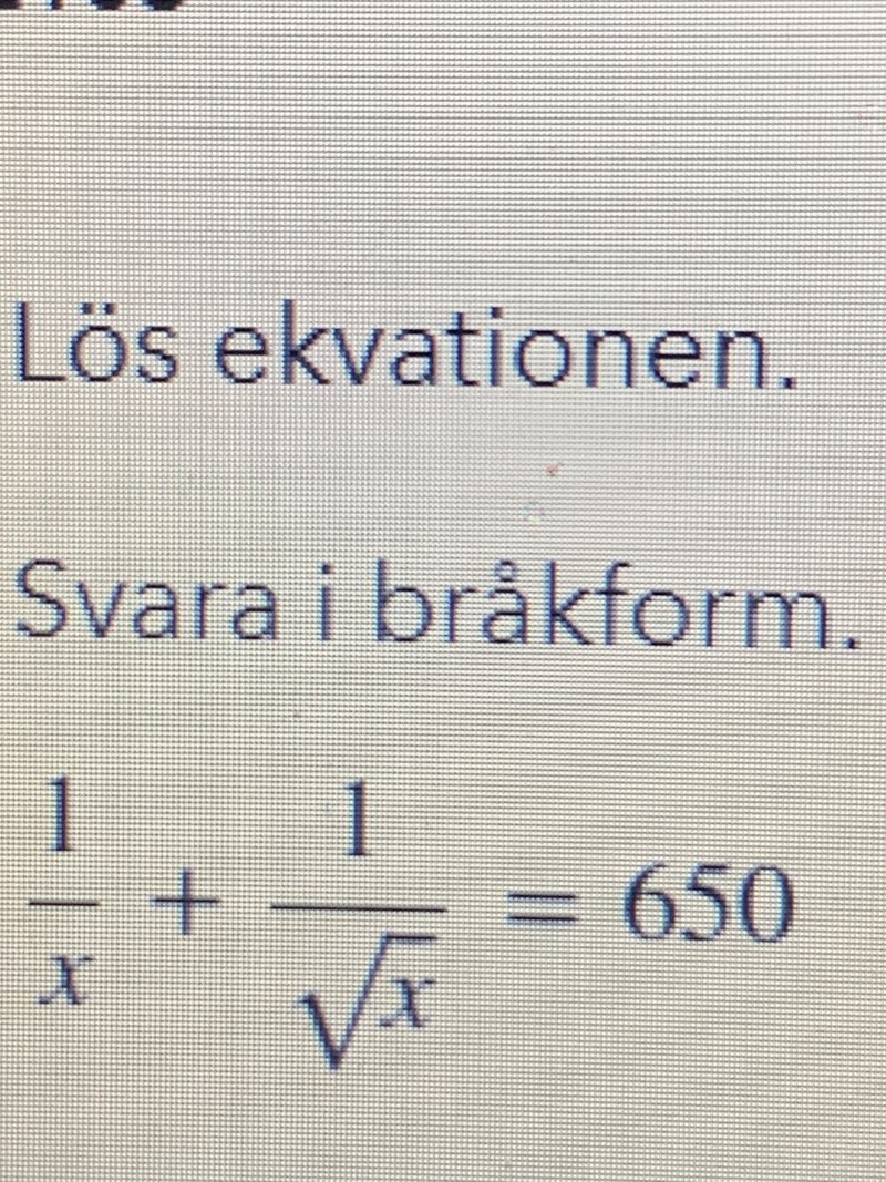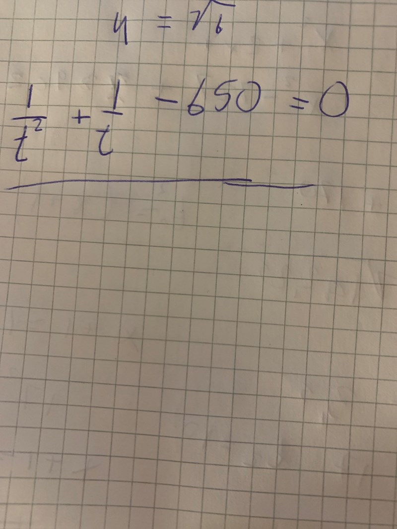 det blir då 1/t^2 + 1/t -650=0 men jag vet inte hur jag ska ta mig vägen sen