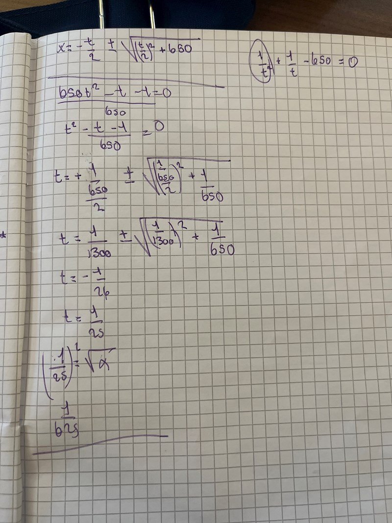 Sätter du in x=1/625 så blir den andra termen =25, vilket är vad som saknas för att få summan 650. Alltid bra att testa sina lösningar.