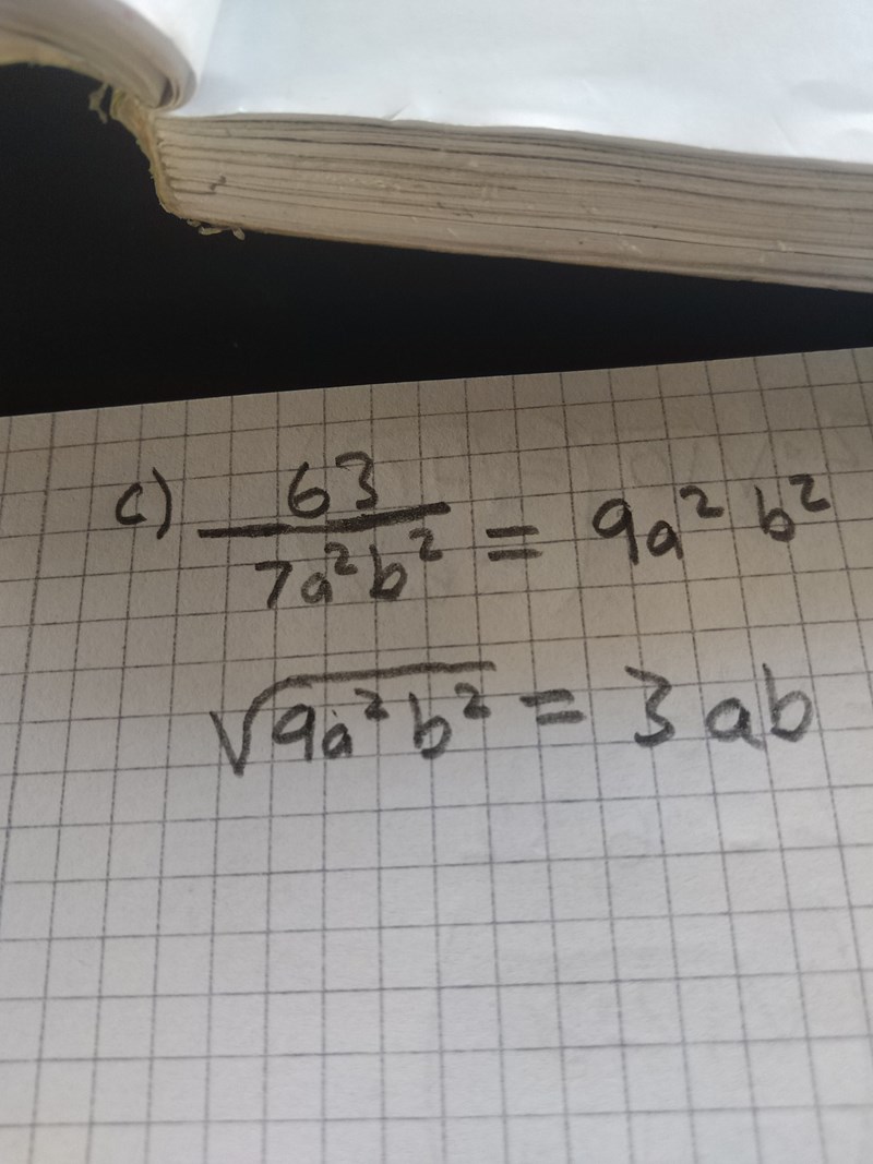 Micimacko skrev:Felet är i första, du ska få 9/a2b2. Eftersom du förkortar bråket med 7.
