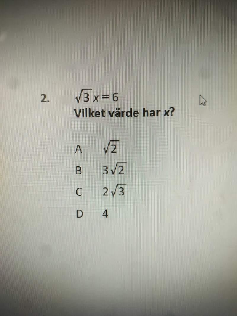 Gör om uträkningen så ska du se att du får fram ett svar som finns med bland alternativen, så kan vi titta på en snabbare lösning sen.