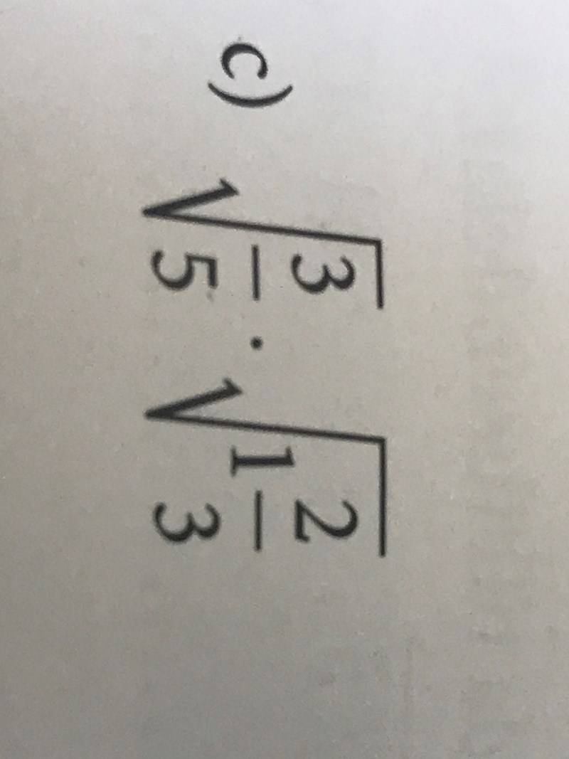 Hej jag undrar hur man ska tänka när man ska räkna ut till exempel: roten ur 3/5 multiplicerat med roten ur 5/3.