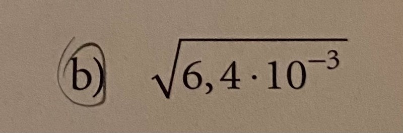 Flytta decimalkommat ett steg åt höger i 6,4. Hur kompenserar du det med exponenten-3 så att blir samma tal. Därefter kan du dra roten ur båda i huvudet.