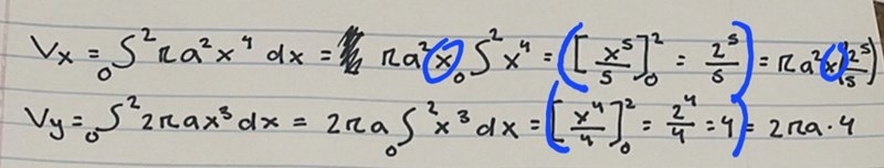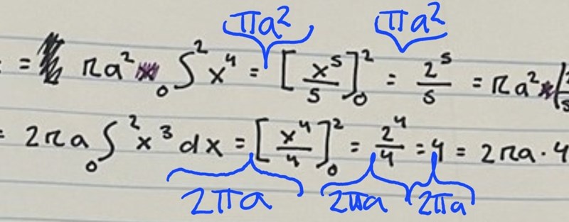 ∫20πa2x4dx = (2πa∫20x3dx)/2