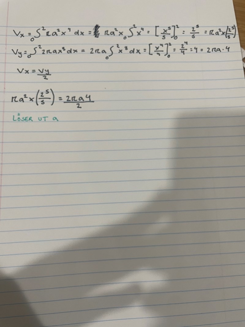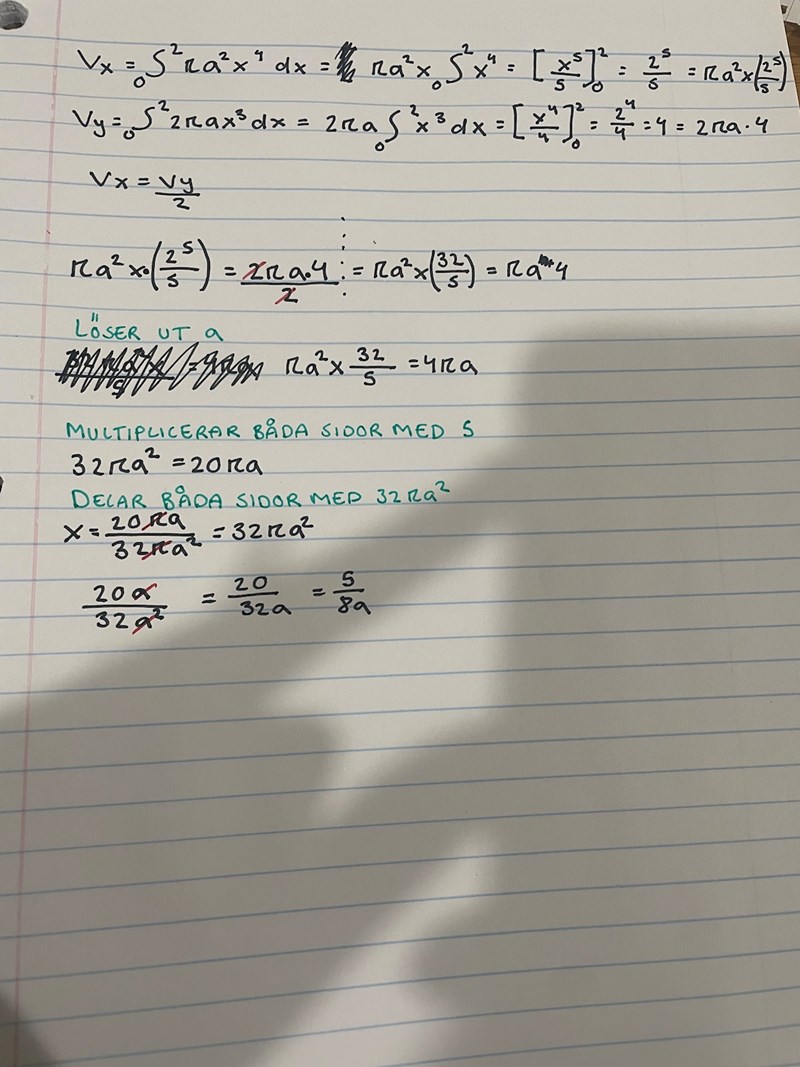 så alltså: ∫0 till 2 pia^2x^2 dx =(2πa∫20x3dx)/2