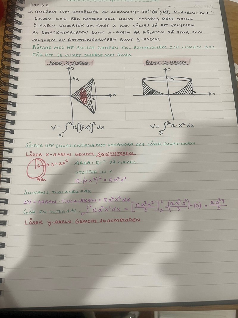 Jaa nu förstår jag. Men då ska jag räkna ut den integralen och föra samma sak för den runt y-axeln? Och sen?
