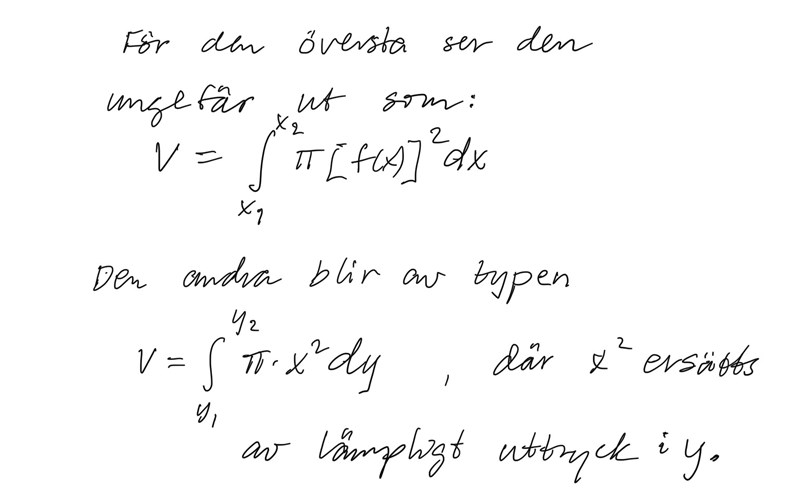 Förstod du de olika alternativen att beräkna volymen Vy, dvs volymen vid rotation runt y-axeln?