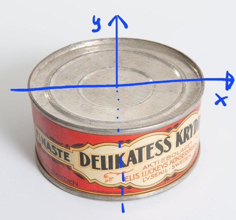 Bilden visar en konservburk som inte buktar ut. Är du med på att x- och y-axeln är placerade enligt bilden?