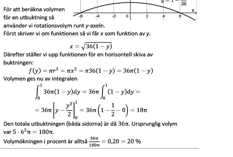 Hej, på den här uppgiften har lösningsförslaget använt sig av att rotationskroppen roterar runt y-axeln. Jag räknade dock med x-axeln och fick fel. Varför ska jag använda y-axeln över y-axeln på denna uppgift och är det fel att räkna med x-axeln?