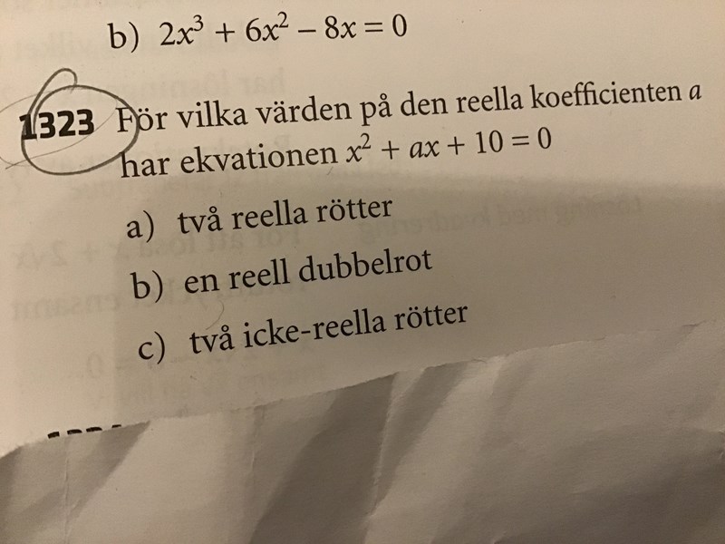 Det är a2 > −2√10. Som sägs i facit.