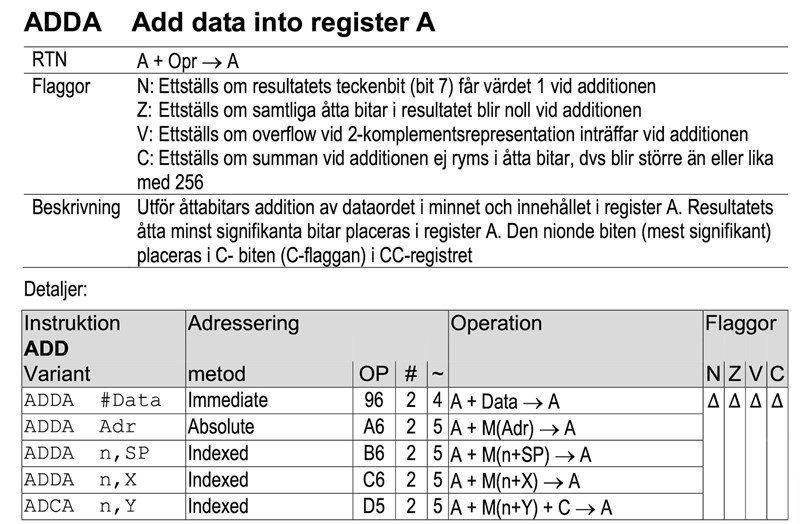 Som du ser så kan ALU:n addera med carry, ADCA gör det till exempel. Men man vill ha båda varianterna som olika instruktioner för olika tillfällen.