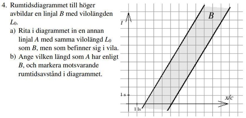 D.v.s. att två synkroniserade klockor på avståndet L, rör sig med hastigheten v i förhållande till en observatör. En klocka visar då tiden T mer än den andra.