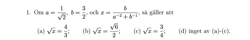 och . Om du gör dessa omskrivningar och förenklar bråket så får du ett uttryck som är enkelt att beräkna roten ur.