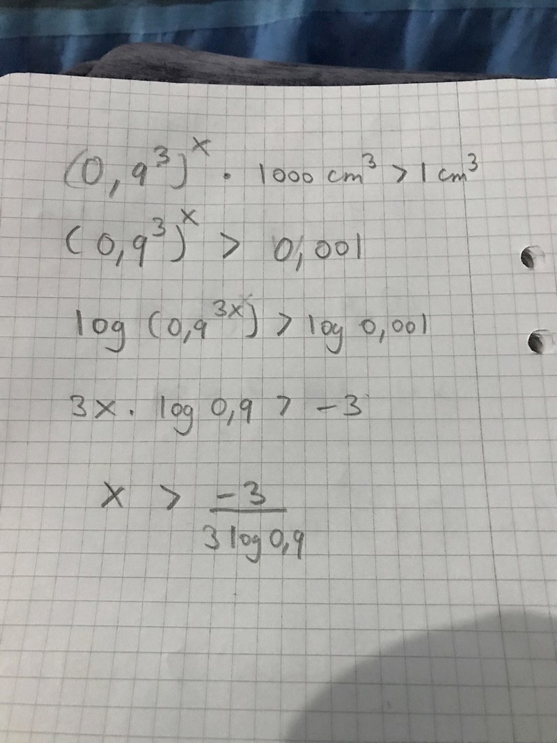 Varför ska vi vända då med log(0,9) när vi delar det på båda sidor?