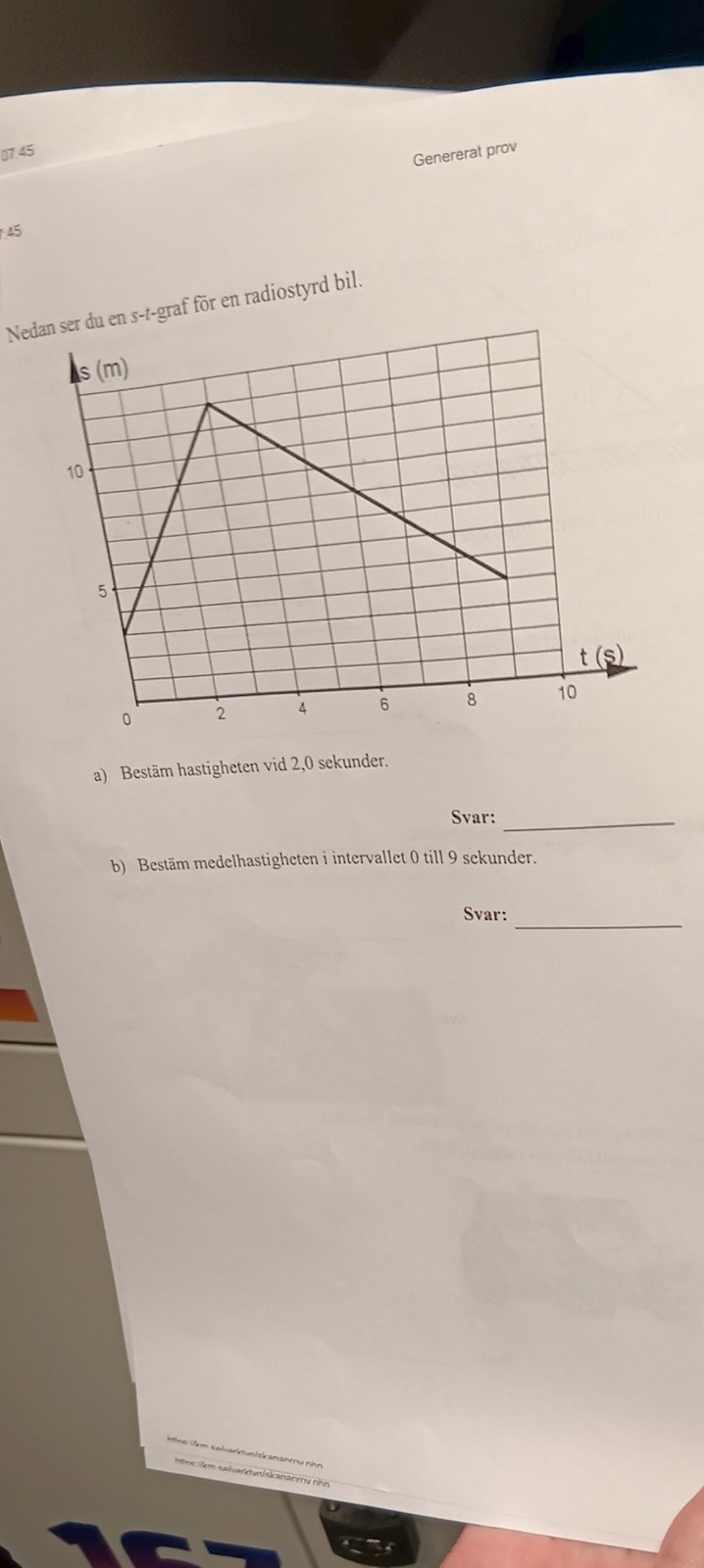 Jag tänkte att man ska beräkna hela sträckan bilen rest under 9 sekunder. Först reser bilen från 3 m till 12 m.