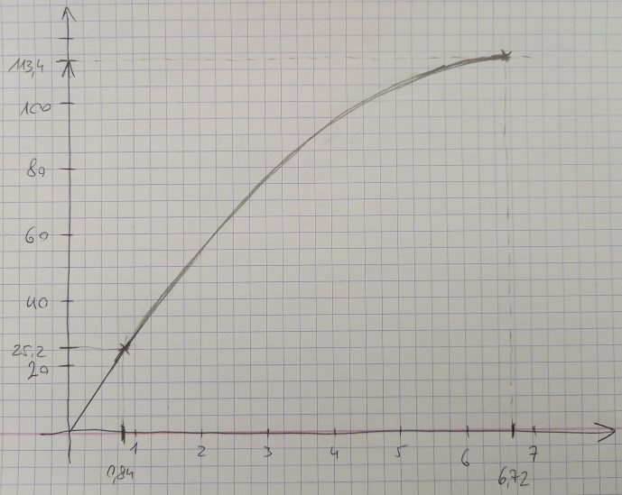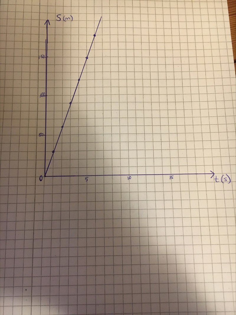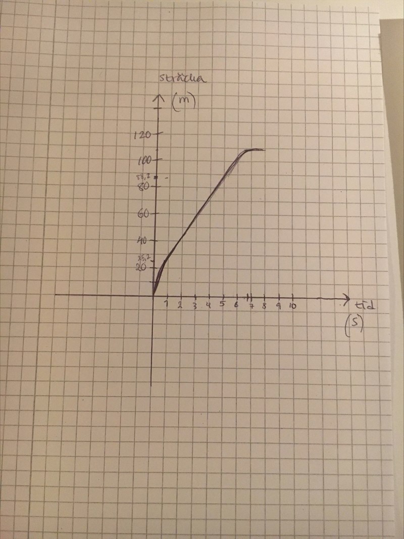 s-t: rät linje som i ditt diagram, men bara i 0,84s, sedan en parabel (andragradsfunktion)