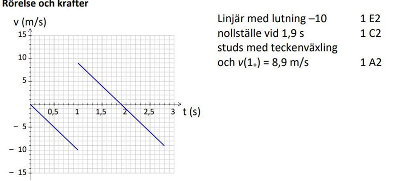 Så om jag fixar lutningen mellan 1 < t < 2 (ungefär) till acceleration, 9.82 är den rätt i övrigt?
