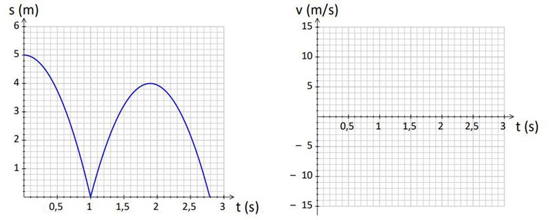 Den vänstra figuren visar s-t-diagrammet för en boll som släpps från 5 m höjd och