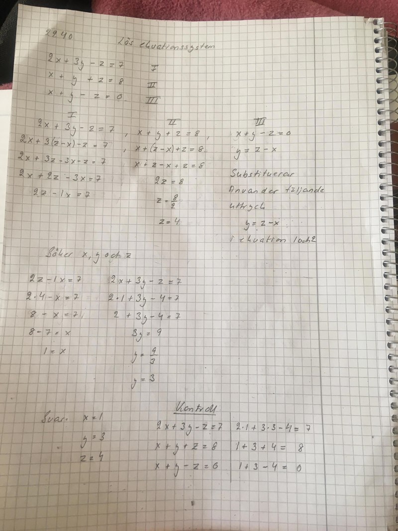 Petighet, del 2: Ekvation II och ekvation III ger efter en liten stunds eftertanke att z = 4 utan beräkningar.