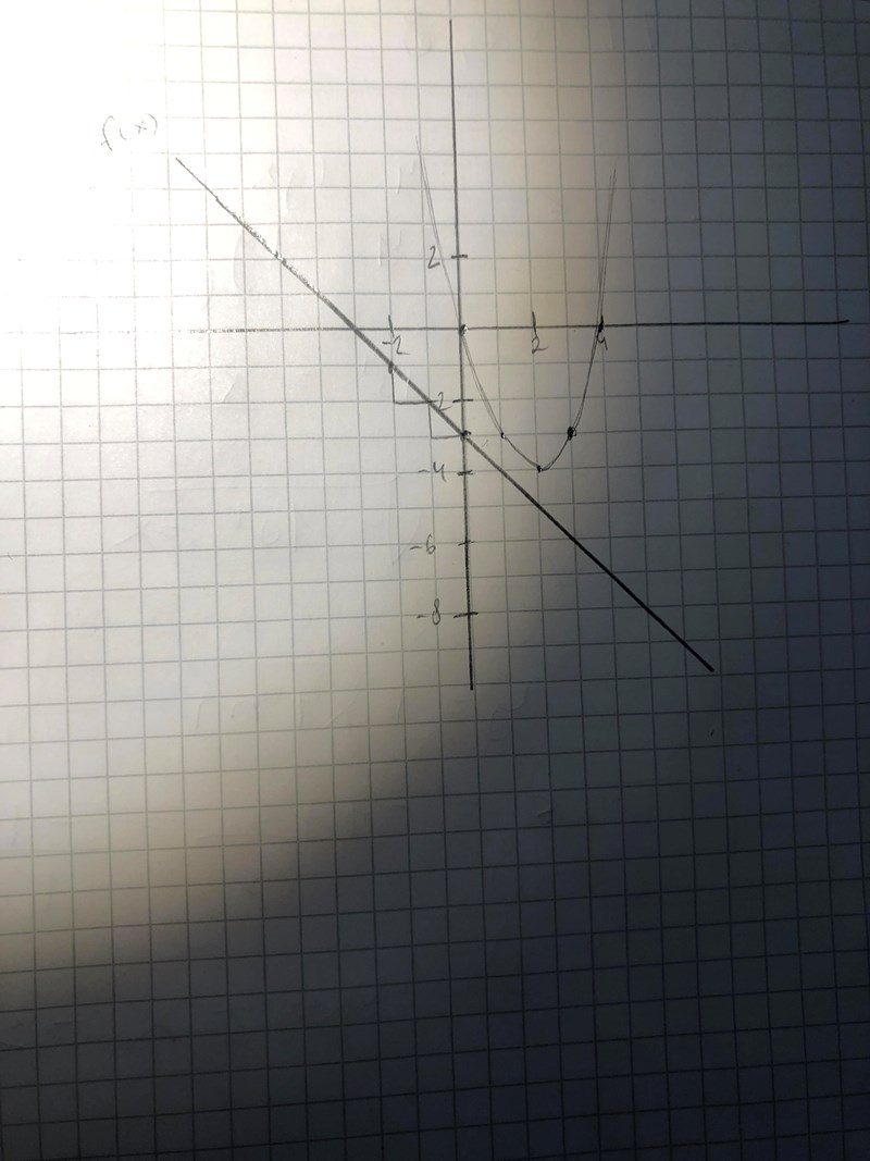 Linjerna kommer inte skära varandra då.. För då hamnar f(x) m värde i -3 vid y axeln
