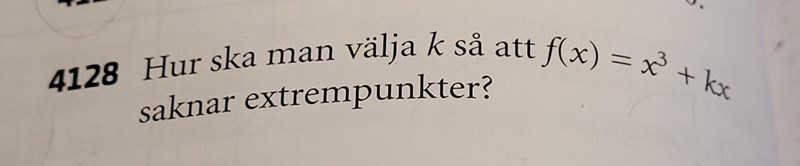 Facit får: k>0 vid ingen extrempunkt och säger att om k=0 får man en terrasspunkt.
