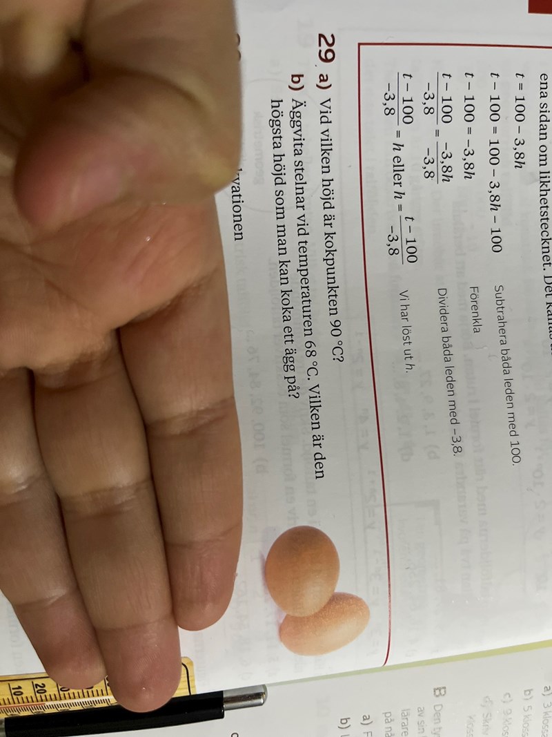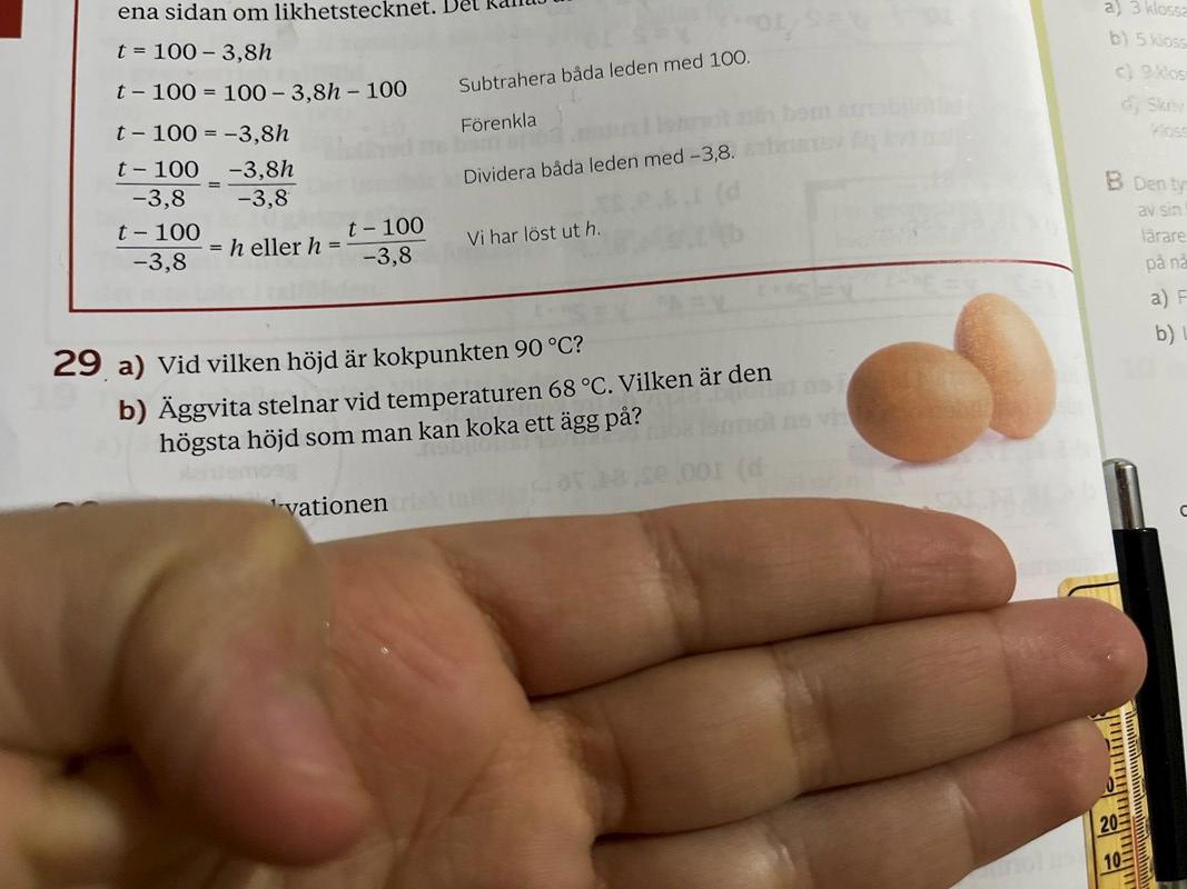 a. Om du vill bestämma vid vilken höjd kokpunkten är 90 grader sätter du in 90 sitället för t i den sista formeln och beräknar vad  h får för värde.