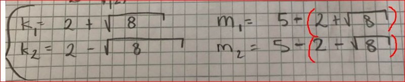 Enligt Ekv 1 är km+m = 1, vilket vi då kan sätta in i Ekv 2 och vi får då: