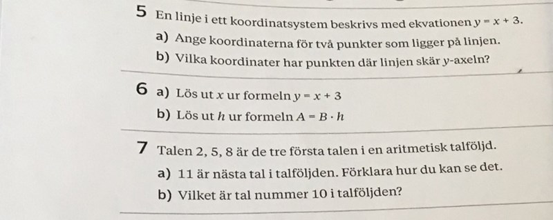 jag har försökt lösa några uppgifter, men förstår verkligen inte svaret eller hur man gör. Lägger in uppgifterna nedan och hade verkligen uppskattat hjälp! (Behöver hjälp med 5a, 5b, 6a och 6b.