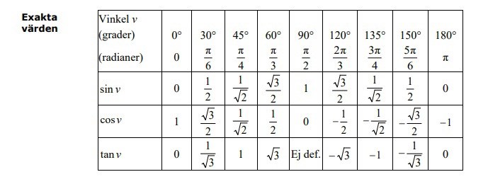 Eugenia skrev:Det är nåt med exakta värden att göra. Kan du kolla i formelblad? (jag är osäker men ändå du kan prova)