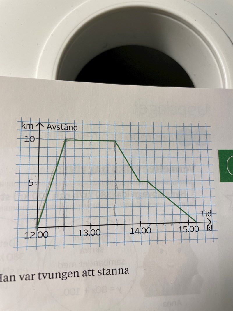 På b och c gör du likadant men du måste läsa av hur långt han förflyttade sig samt hur lång tid det tog. Titta på rätt del av diagrammet och räkna först ut sträckan (skillnaden mellan där han börjar och där han stannar) och sen tiden (på samma sätt).