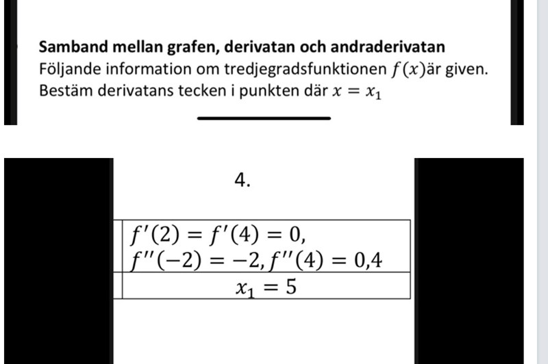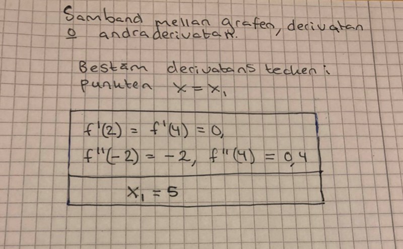 Är det korrekt att du vet både derivatan och andraderivatan när x = 4 men bara förstaderivatan när x = 2 och bara andraderivatan när x = -2, eller har du tappat bort ett minustecken (eller fått ett fö rmycket)?