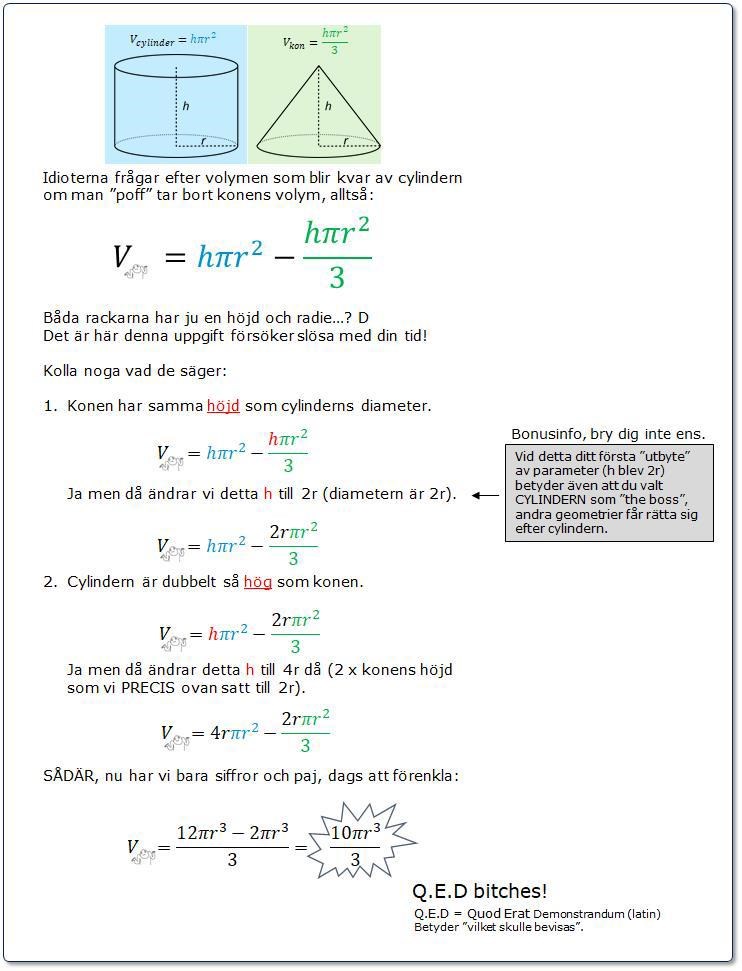 Jaha och om man subtraherar cylindern med konen så blir det svaret då?