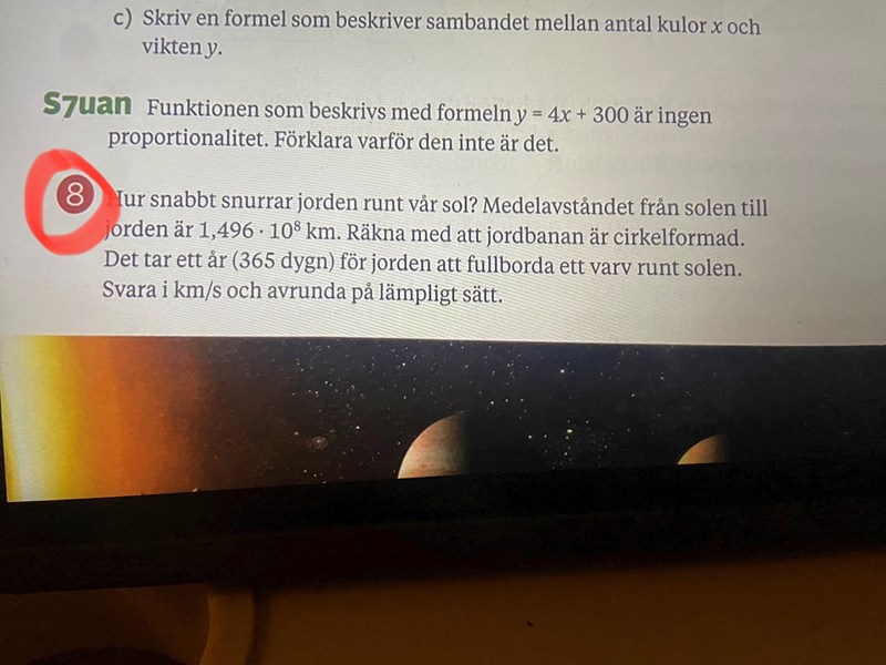 Hur långt är det runt cirkeln och om det tar 365 dygn att åka runt, hur snabbt åker jorden?