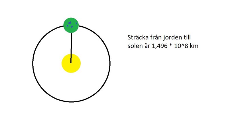 Vi räknar med att jordbanan är cirkelformad. Då får du en cirkel som ser ut såhär:
