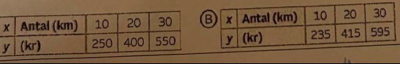 Visa att kostnaden för båda taxibolagen är samma efter 15 km.
