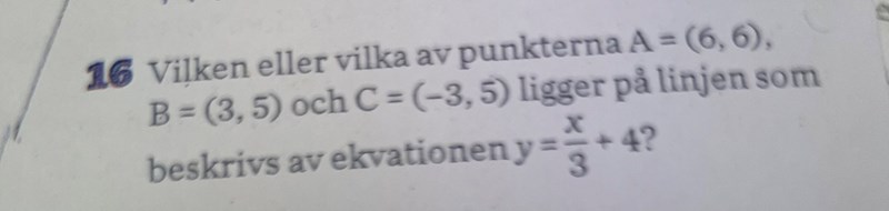Är det rätt att A och B finns med? För jag gjorde 6/3+4= 6 och 6 finns med på koordinaterna