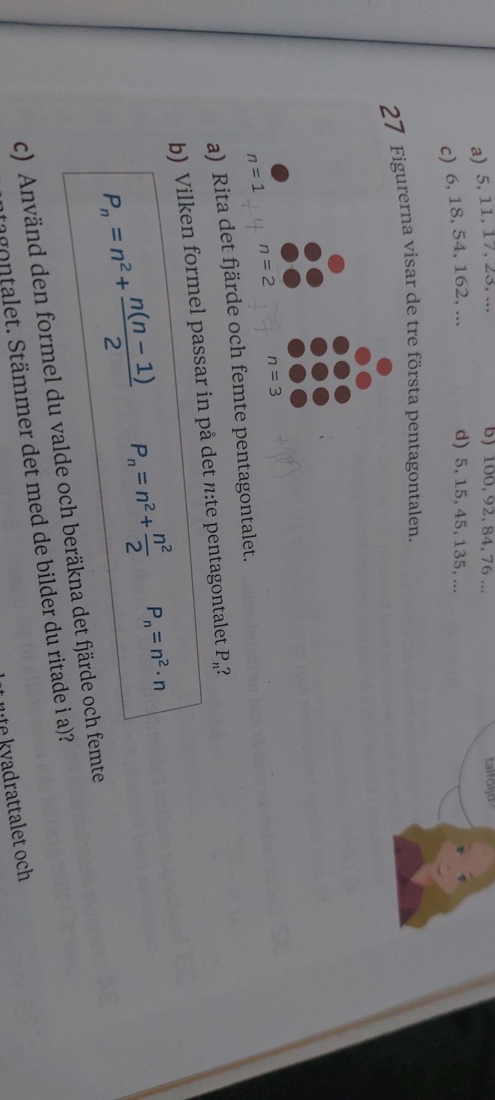 Laguna skrev:Prova de tre förslagen med n = 1, 2 och 3. Vilket förslag passar?