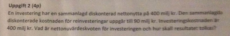 Funderar på ifall reinvesteringen ska med i täljaren för NNK utifrån frågeställningen ovan. Frågan är alltså ifall reinvesteringar redan är medräknade i nettonyttan eller inte?