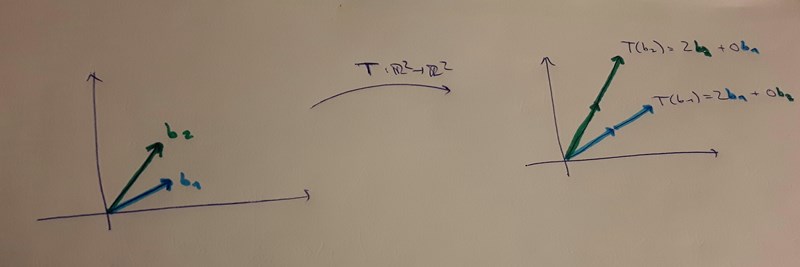 Länktips: Om du inte redan har gjort det rekommenderar jag att du någon gång när du får tid tittar på 3blue1brown's Youtube-serie om linjär algebra. Den fick åtminstone detta med linjära avbildningar och matrisrepresentationer att kännas betydligt klarare för mig när jag själv lärde mig det, så det kanske är till någon hjälp för dig också :)