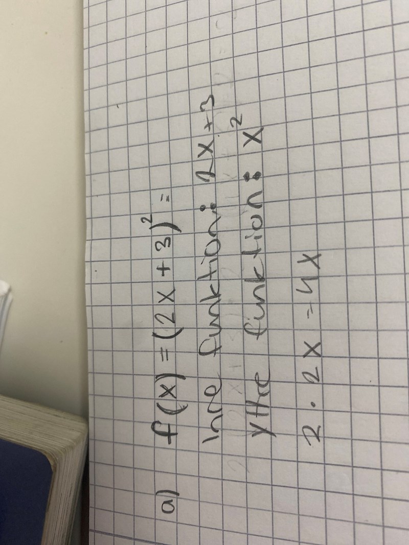 Om jag ska derivera den översta sammansatta funktionen Varför blir det inte 4x? Man tar väll derivatan av den yttre funktionen gånger den inre funktionen ??