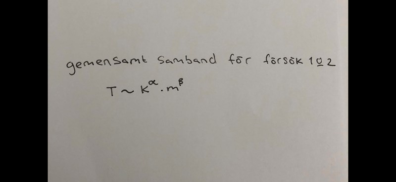 Gjorde två försök, 1) var att bestämma hur svängningstiden beror på massan. Försök 2) bestämning av hur svängningstiden beror på fjäderklnstanten.