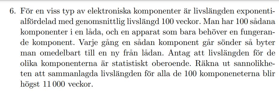 sammanlagda livslängden för alla 100 komponenterna blir högst 11 000 veckor