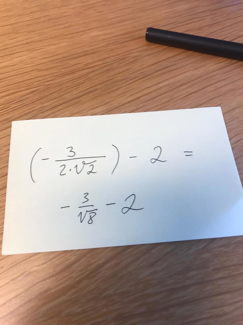 värdet för hela uttrycket borde då bli ((-3*roten ur 2)/4) -2 ? Rätt/Fel