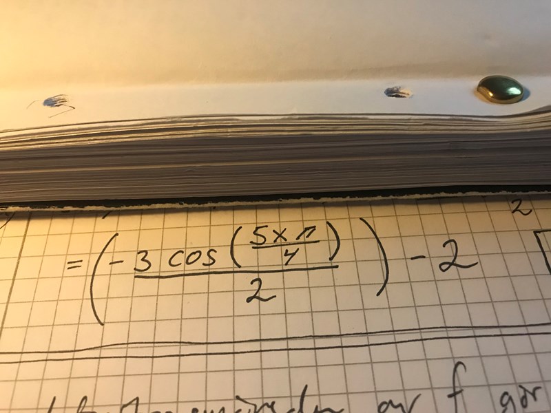 till att börja med ersatte jag (cos pi) med "1" ---- men det kanske blev fel? För h(3) skulle funktionen då bli ((-3*"1"*((5*3)/4))/2) -2 ==> -61/8