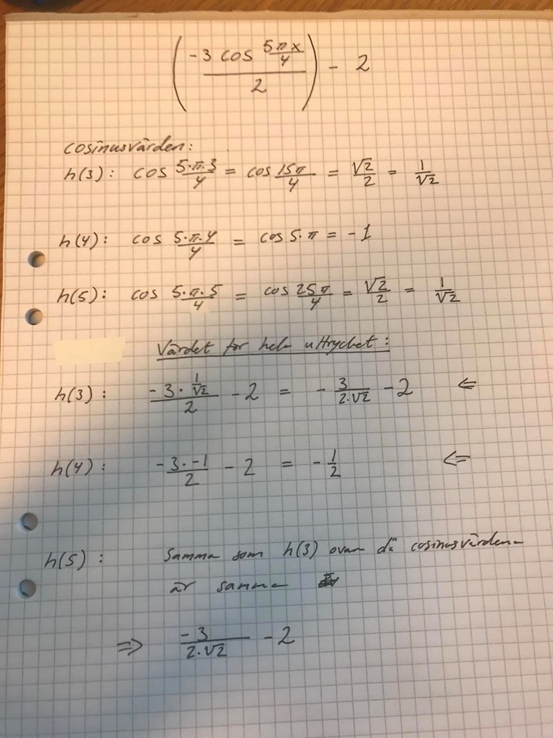 för h(4) blir värdet -7/2 - stämmer det?Snälla låt oss slippa gissa - visa steg för steg hur du har räknat, i stället för att bara slänga fram svaret utan motivering. Vilket värde har cosinus-termen i de båda fallen?