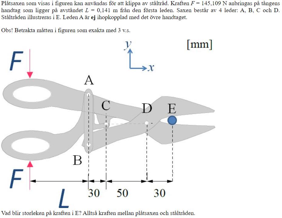 Efter jag frilagt tror jag att jag skall ta Momentjämnvikt (M) i y-led: