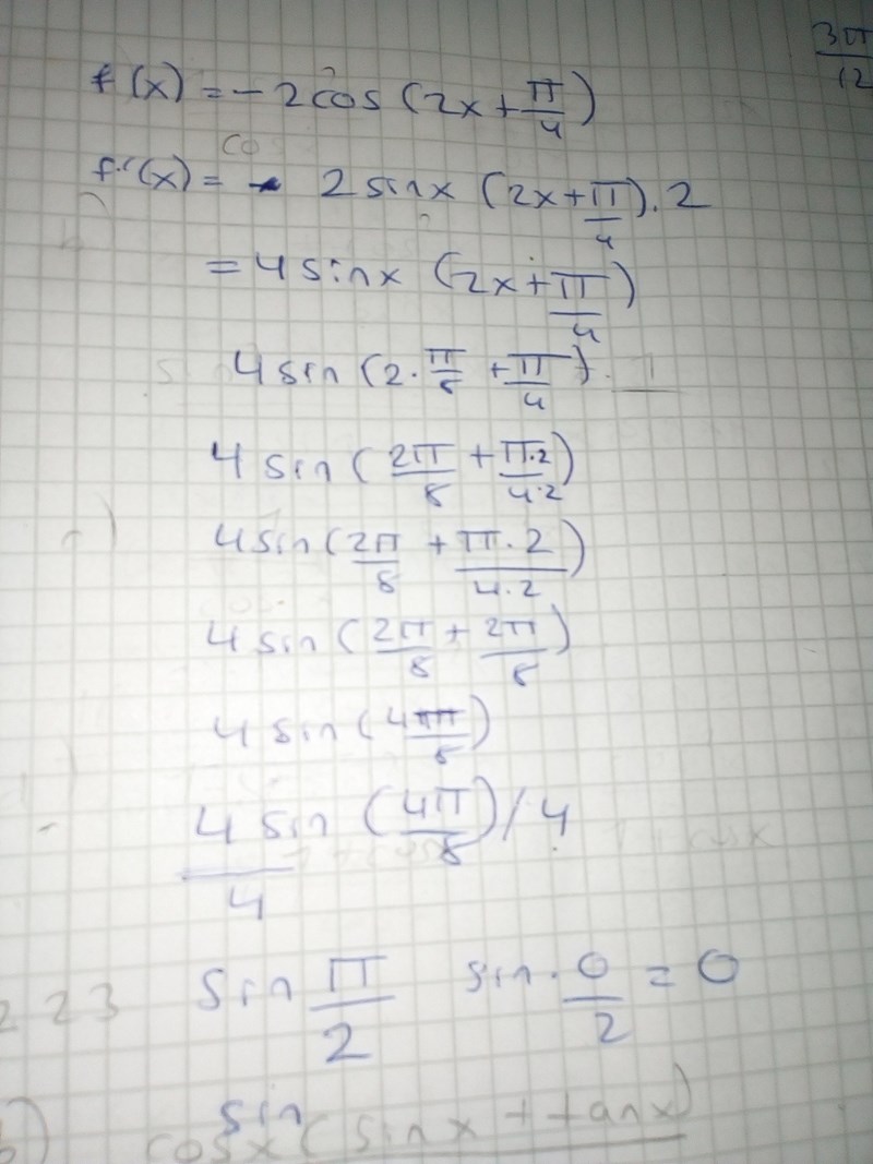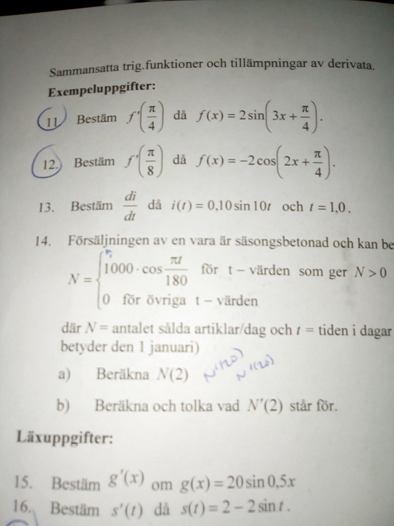 På tolvan har du tagit fram rätt derivata, det har bara blivit knas när du sätter in värdet .