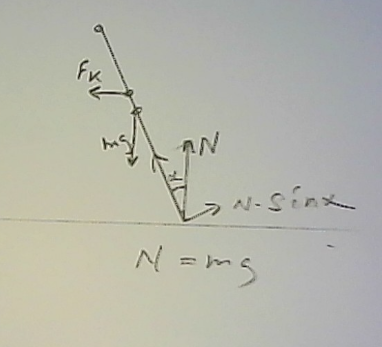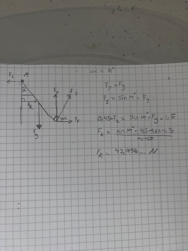 Nu har jag kollat dina beräkningar, det ser på det hela taget rätt ut, men din kraftritning har ett fel, det finns ingen friktionskraft. Normalkraften kan man komposantuppdela, en komposant vrider skylten moturs, den andra är parallell med skylten