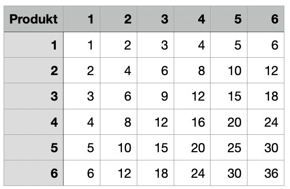 Vad blir P(produkten är ett udda tal)?Man kan också göra en tabell med alla produkterna, typ så här: