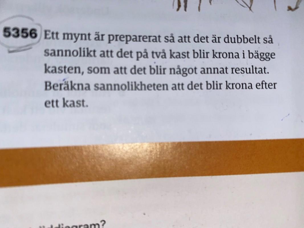 Jag tänkte kalla sannolikheten för att få krona i bägge kasten för p^2